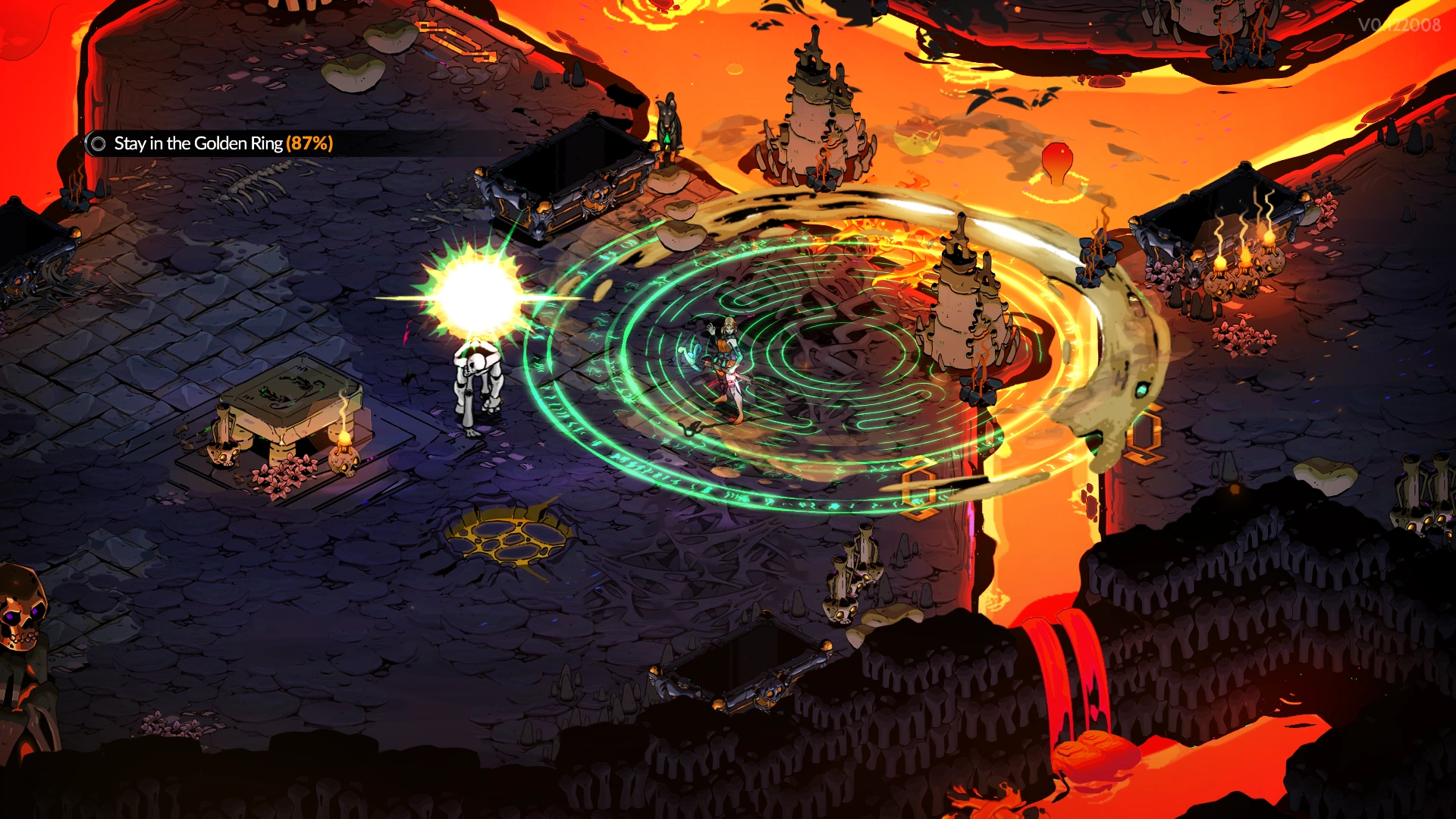 To leave Asphodel, you must activate the sand vortex which will form a moving green witch ring that you must stay on until it reaches a 100%. Once a 100% has been reached, you simply need to pick the chamber's reward and you will return to Oceanus. During this phase, enemies from Asphodel will start to spawn and attack you, keep in mind that they will constantly spawn as the percentage reaches 100% or 0%.
